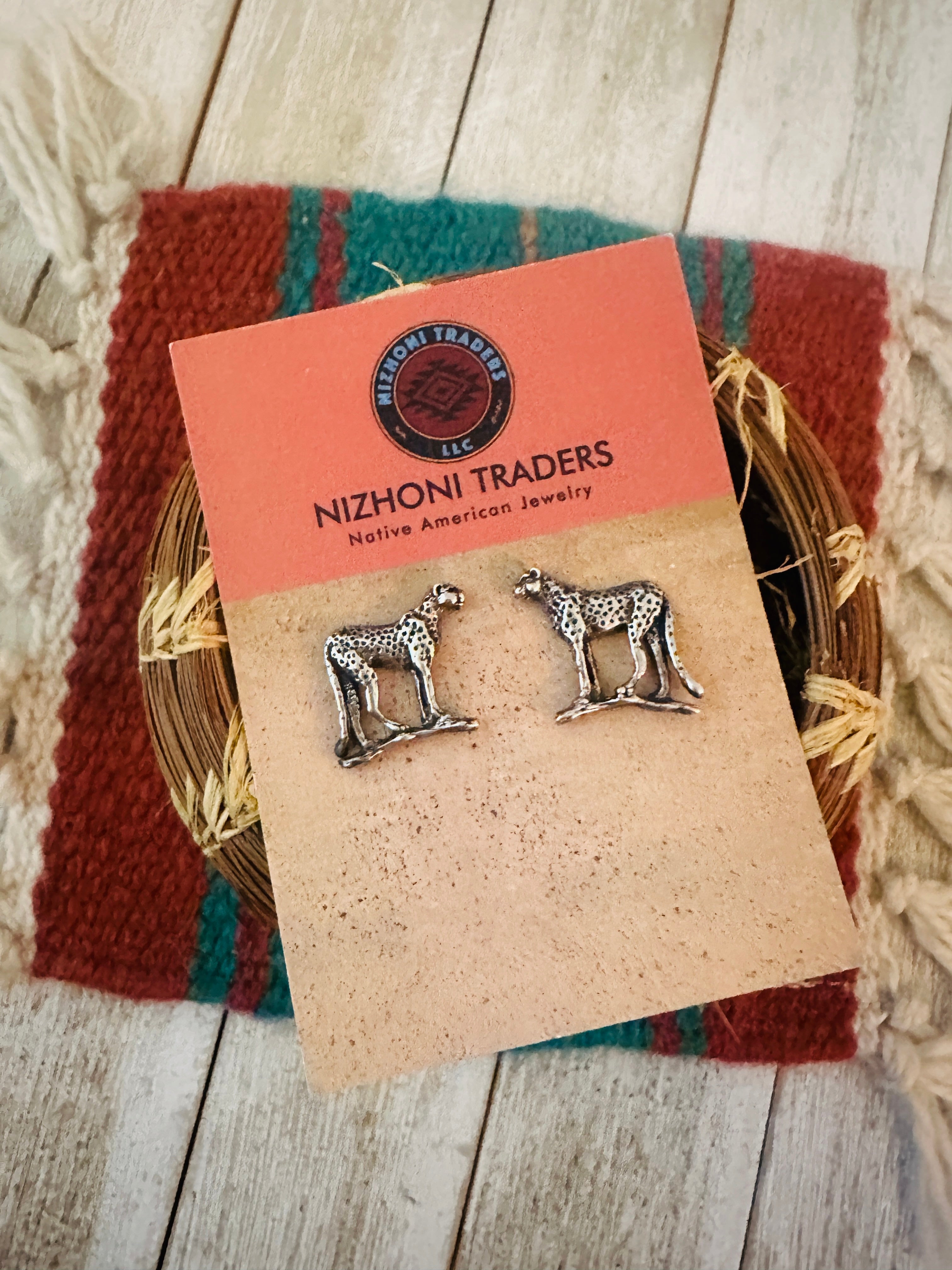 Handcrafted Old Pawn Sterling Silver Cheetah Stud Earrings