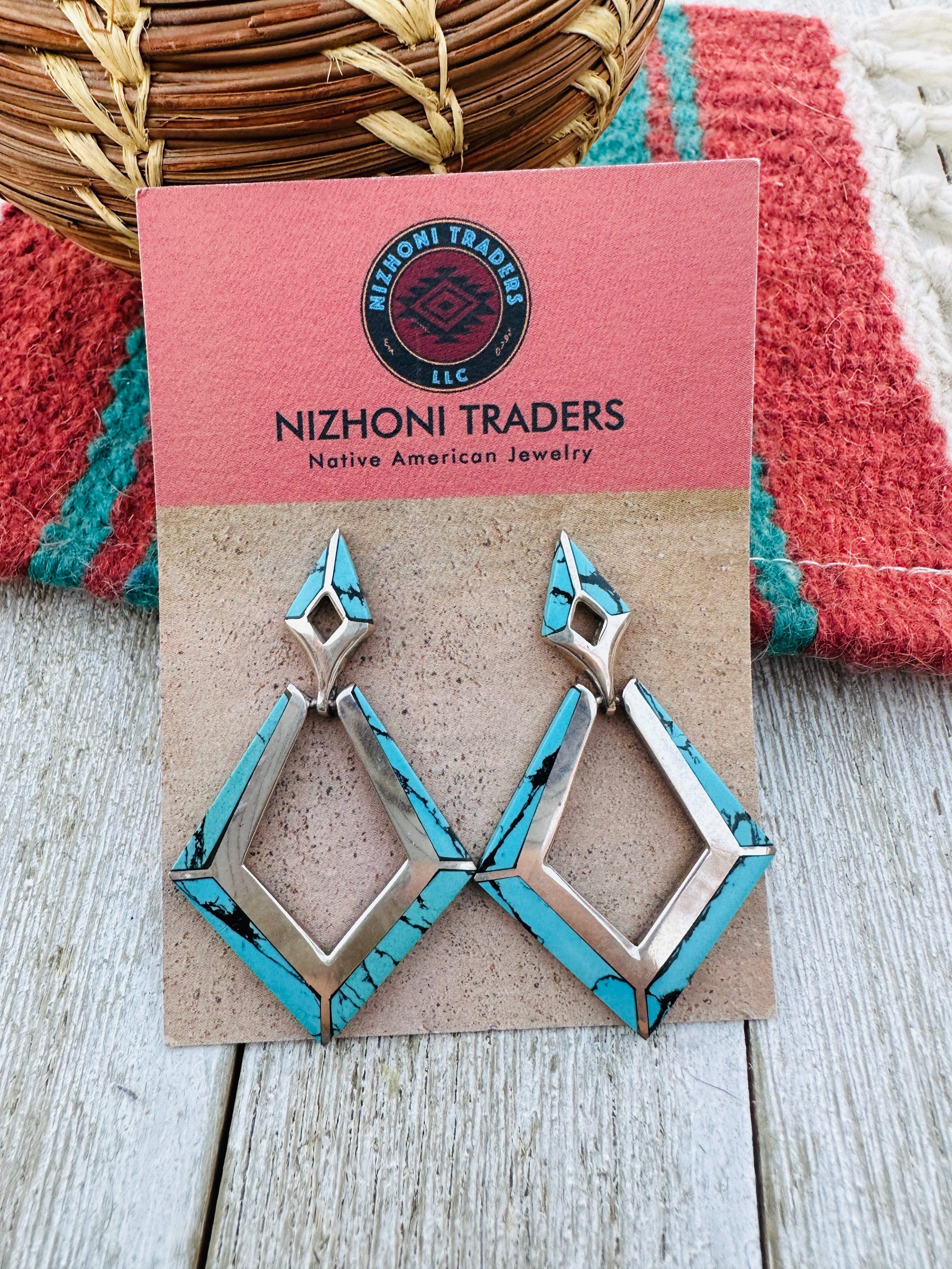 Handcrafted Old Pawn Sterling Silver & Turquoise Dangle Earrings