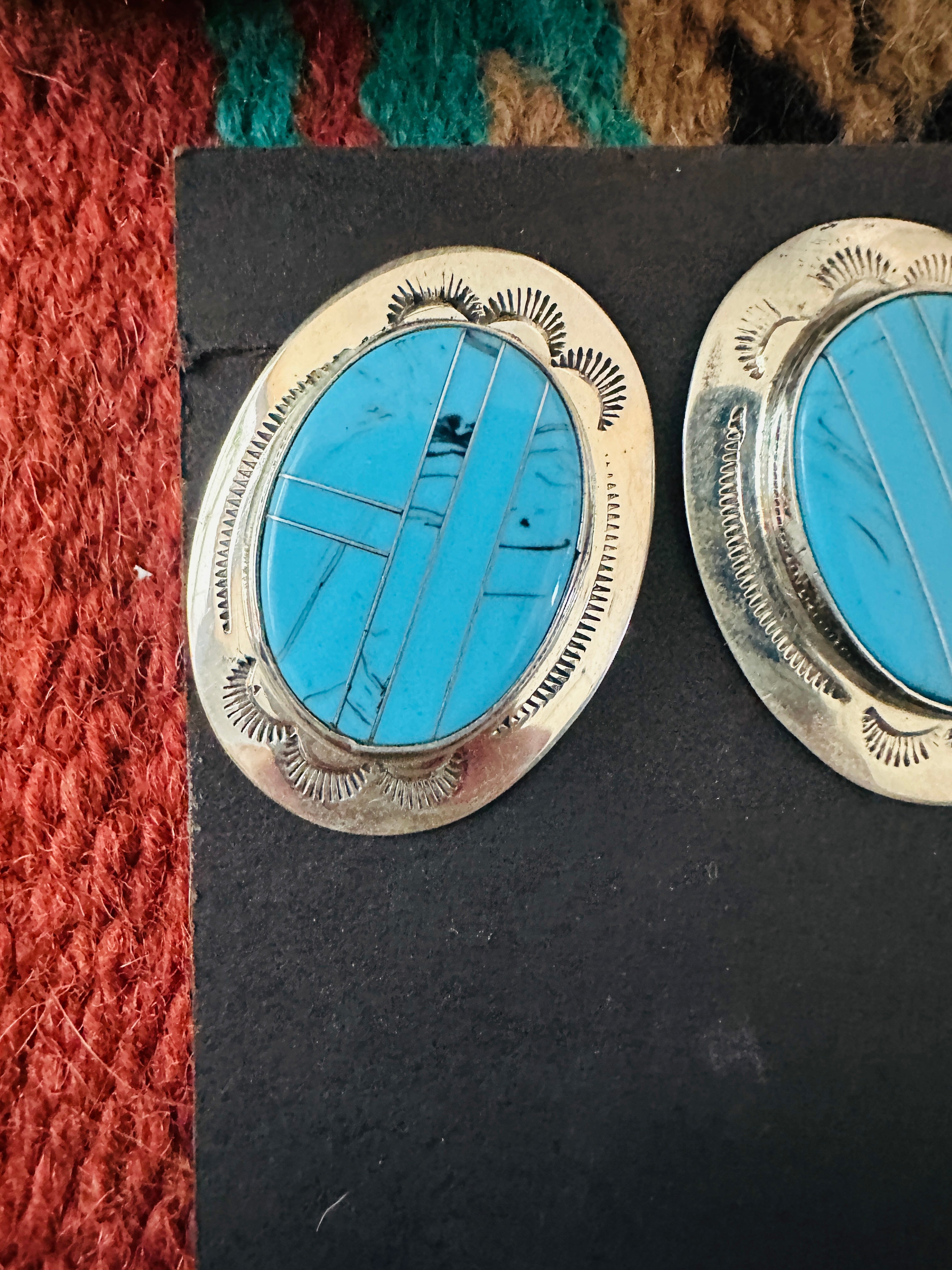 Handcrafted Old Pawn Sterling Silver & Turquoise Inlay Post Earrings
