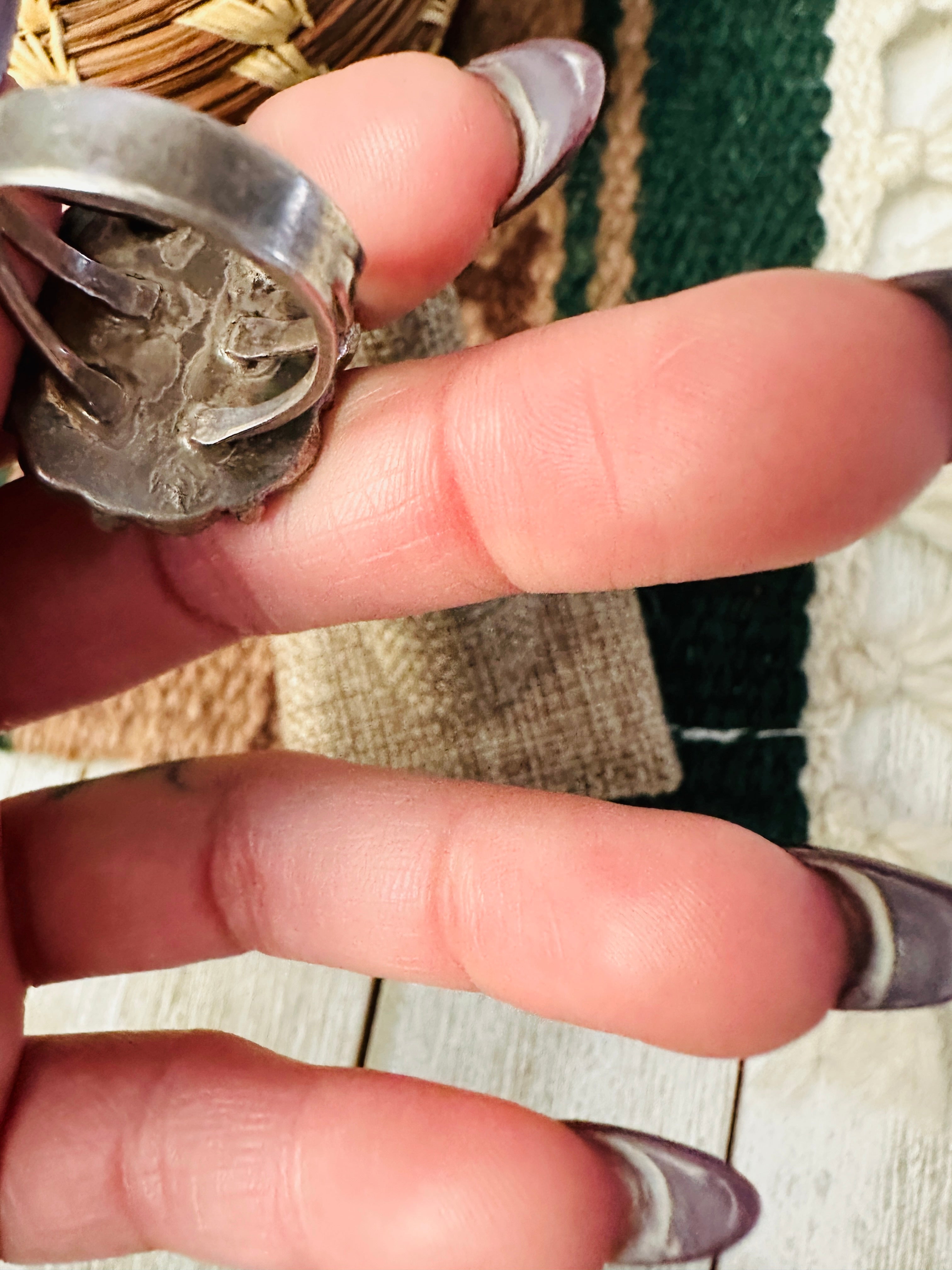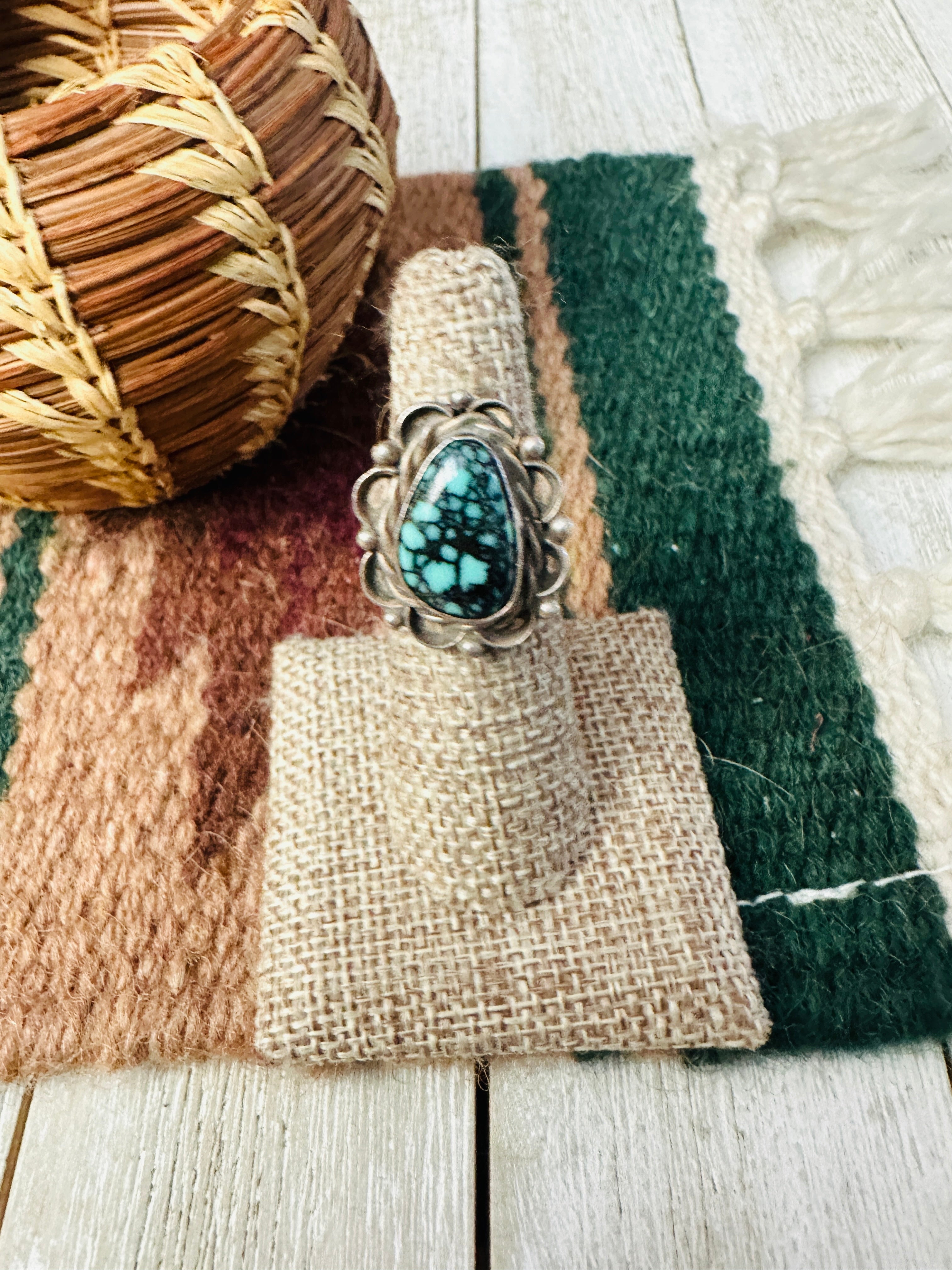 Old Pawn Handcrafted Kingman Web Turquoise & Sterling Silver Ring Size 5.75