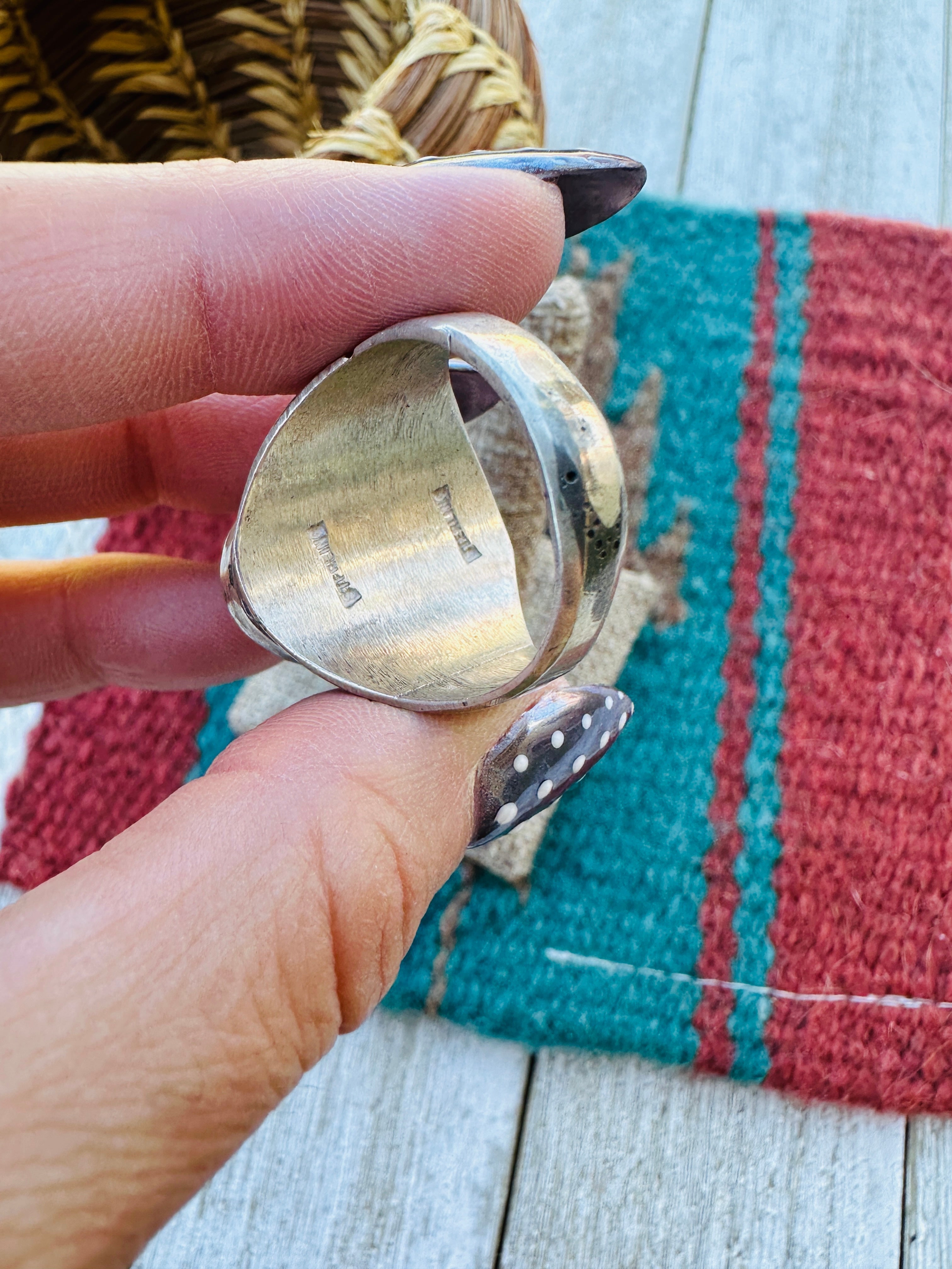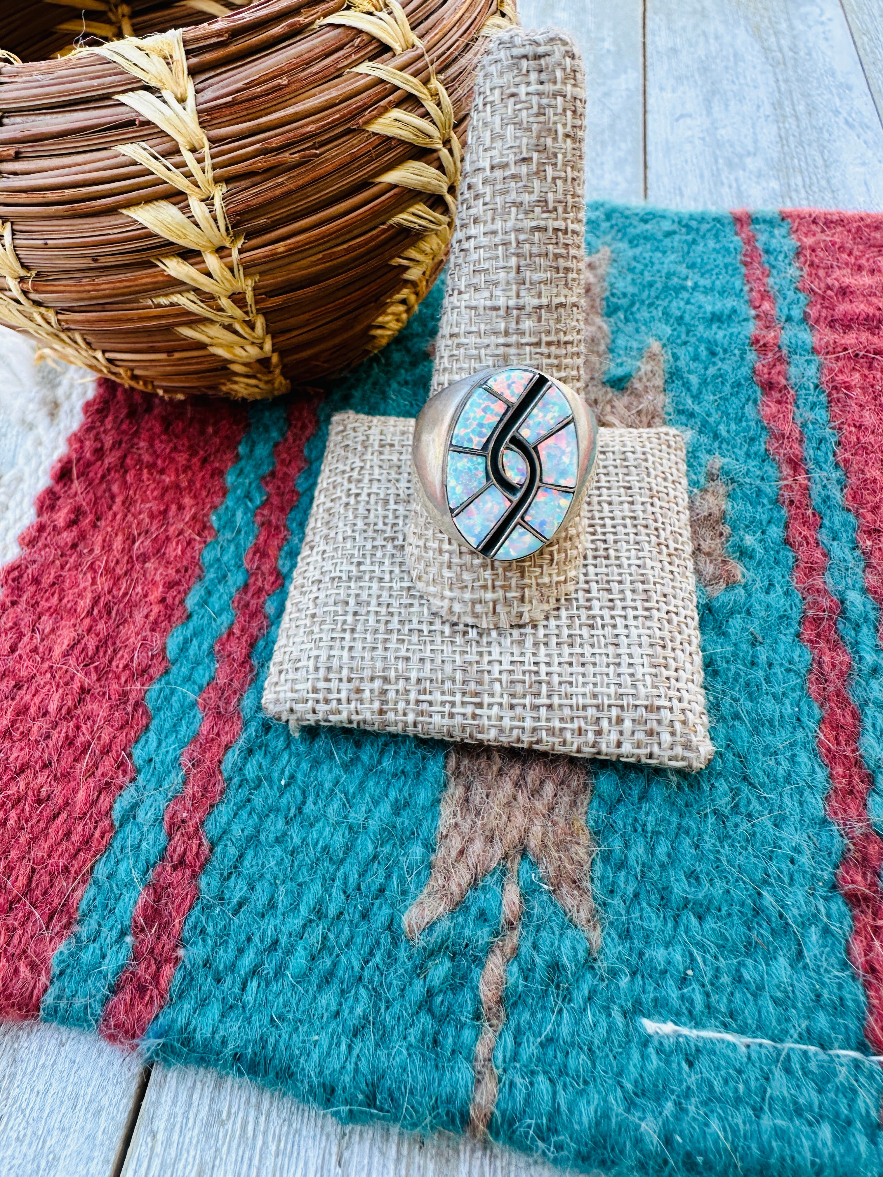 Old Pawn Handcrafted Opal, Onyx & Sterling Silver Inlay Ring Size 11
