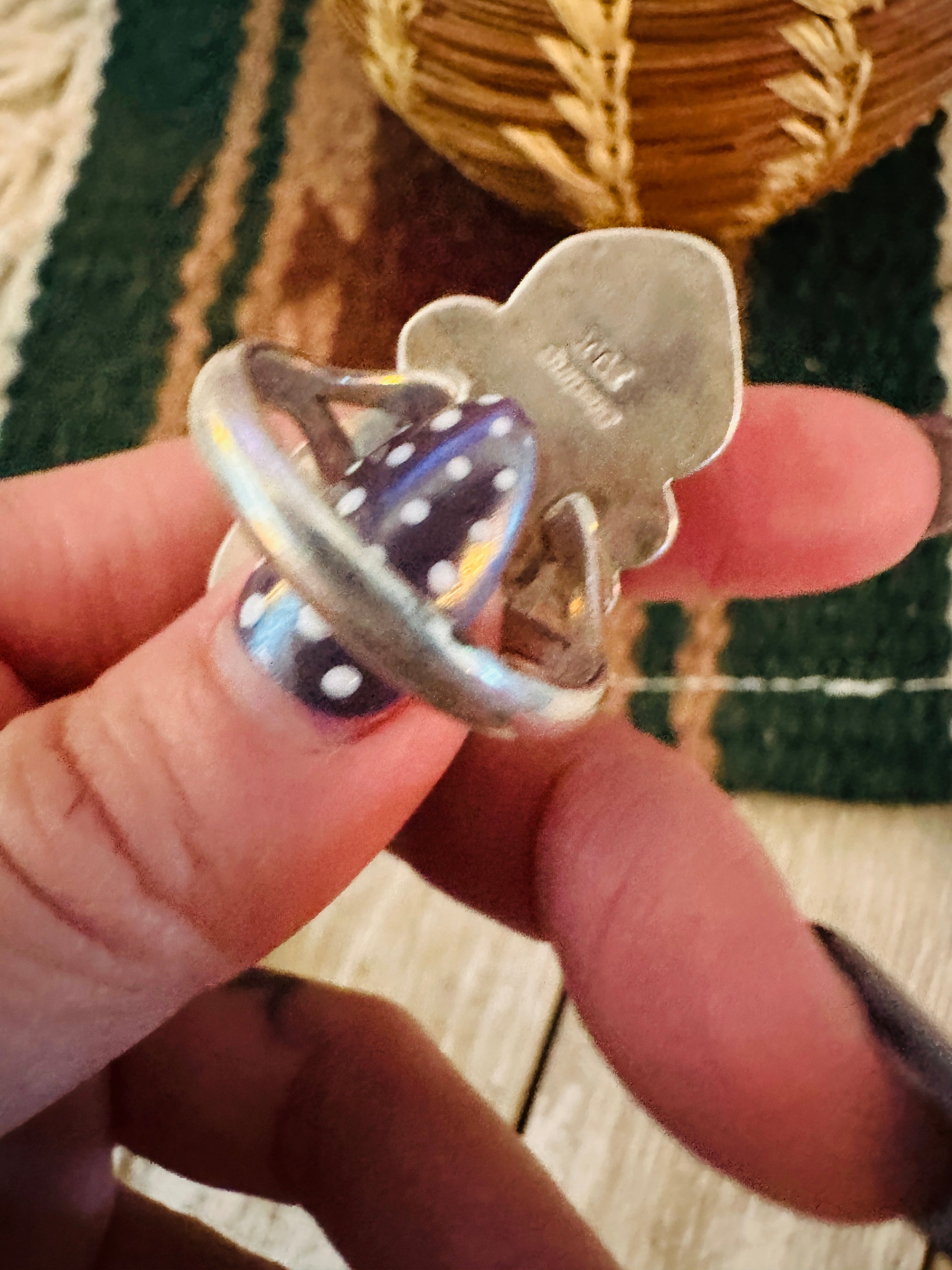 Old Pawn Handcrafted Turquoise, Coral & Sterling Silver Ring Size 10.25
