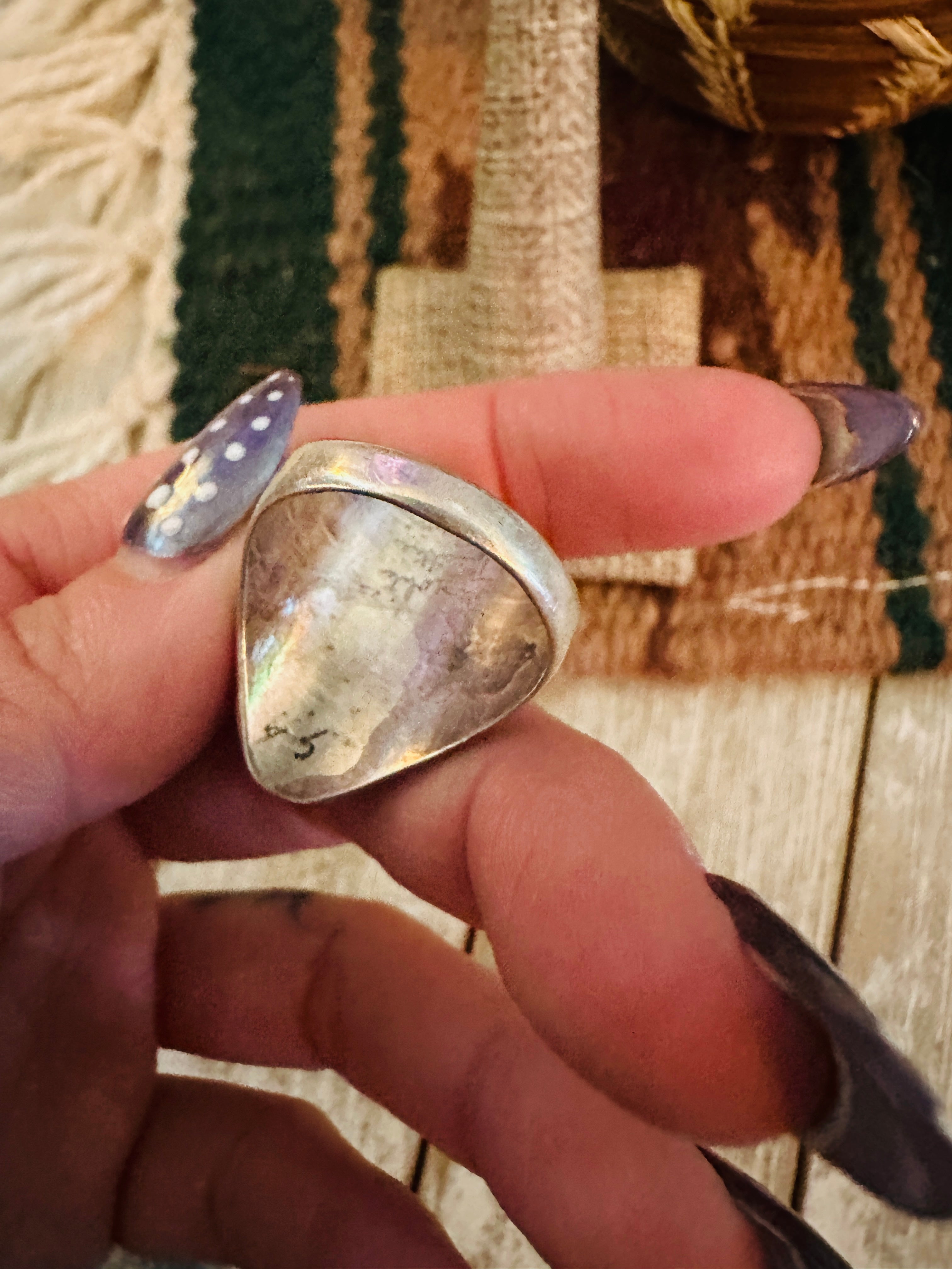 Old Pawn Handcrafted Turquoise, Coral & Sterling Silver Ring Size 8.75
