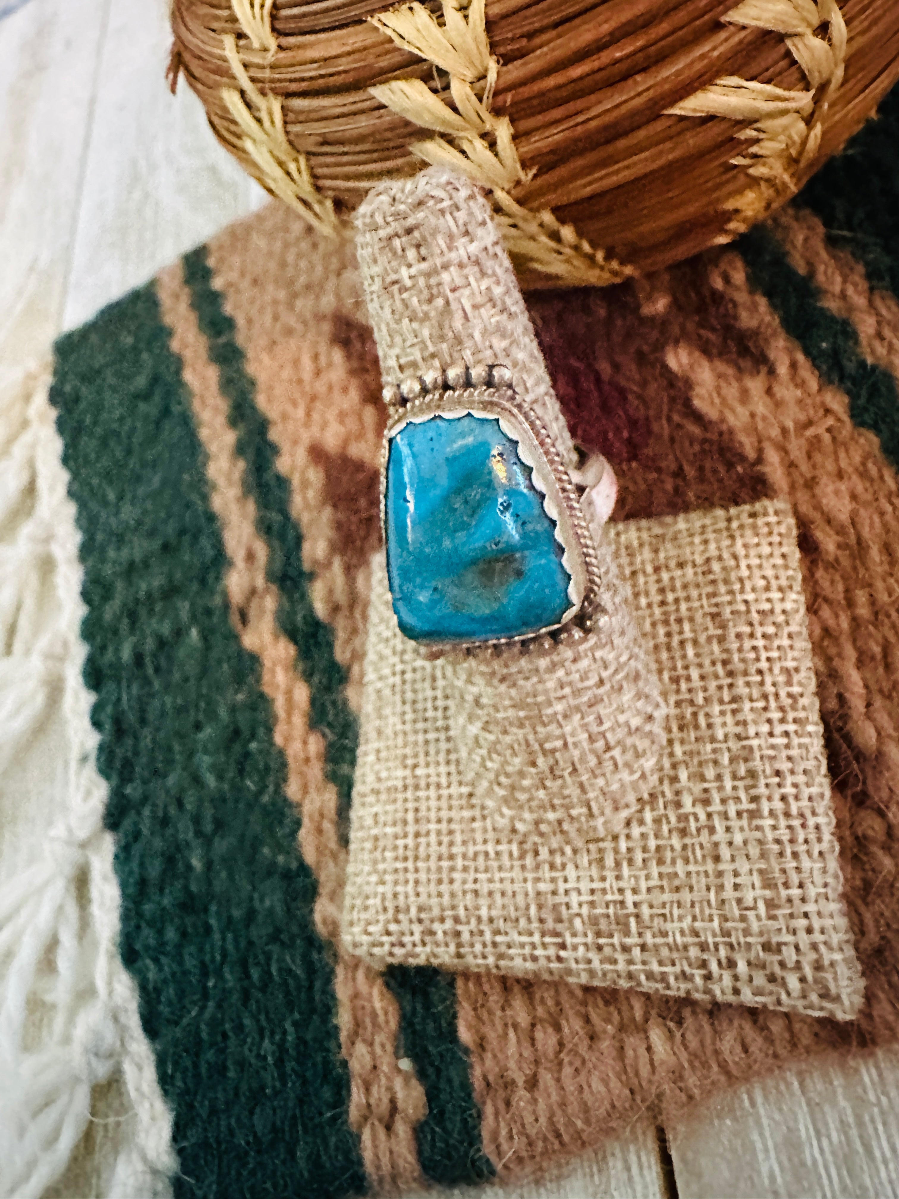 Old Pawn Handcrafted Turquoise & Sterling Silver Ring Size 8