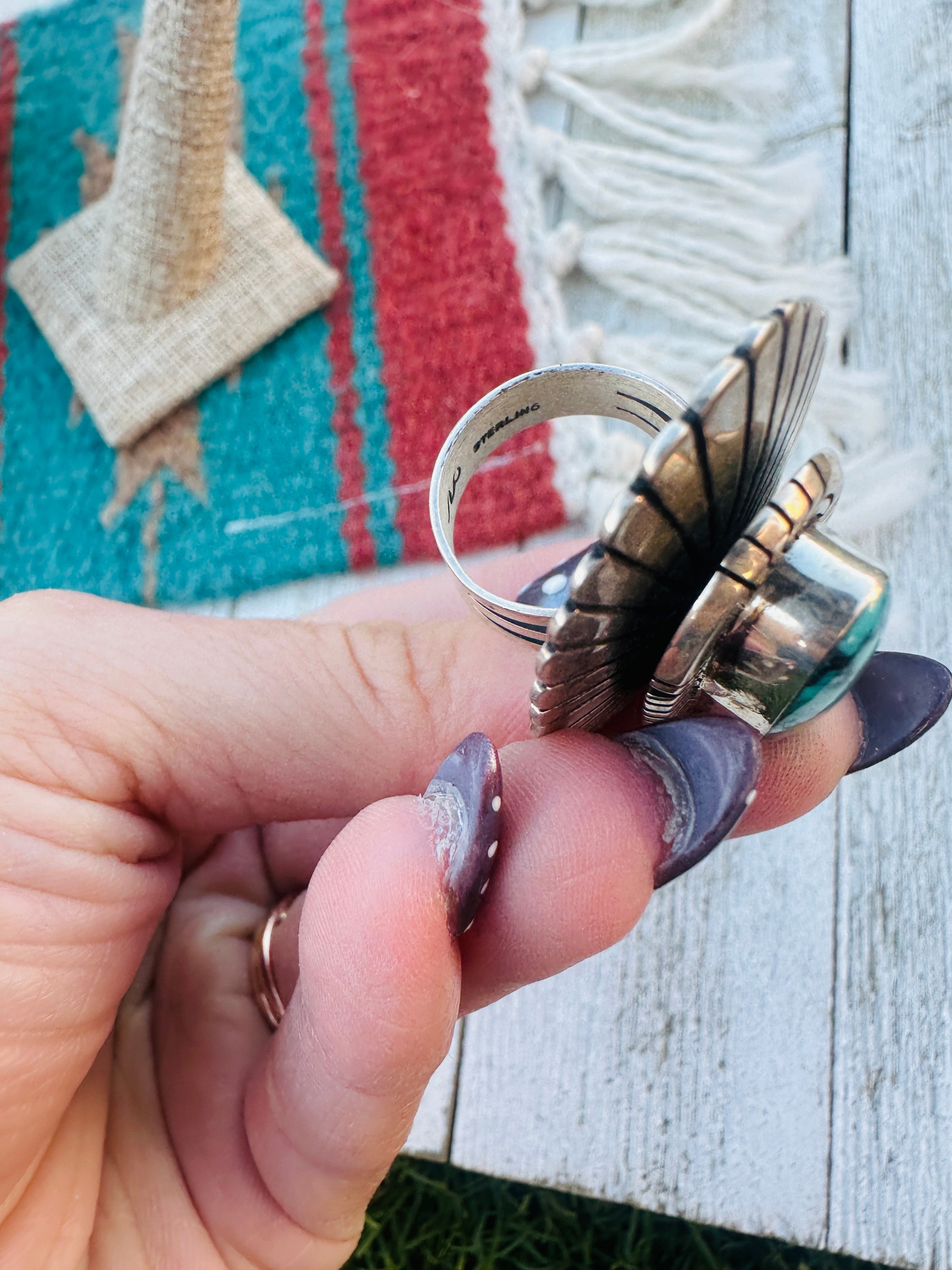 Old Pawn Handcrafted Turquoise & Sterling Silver Ring Size 6