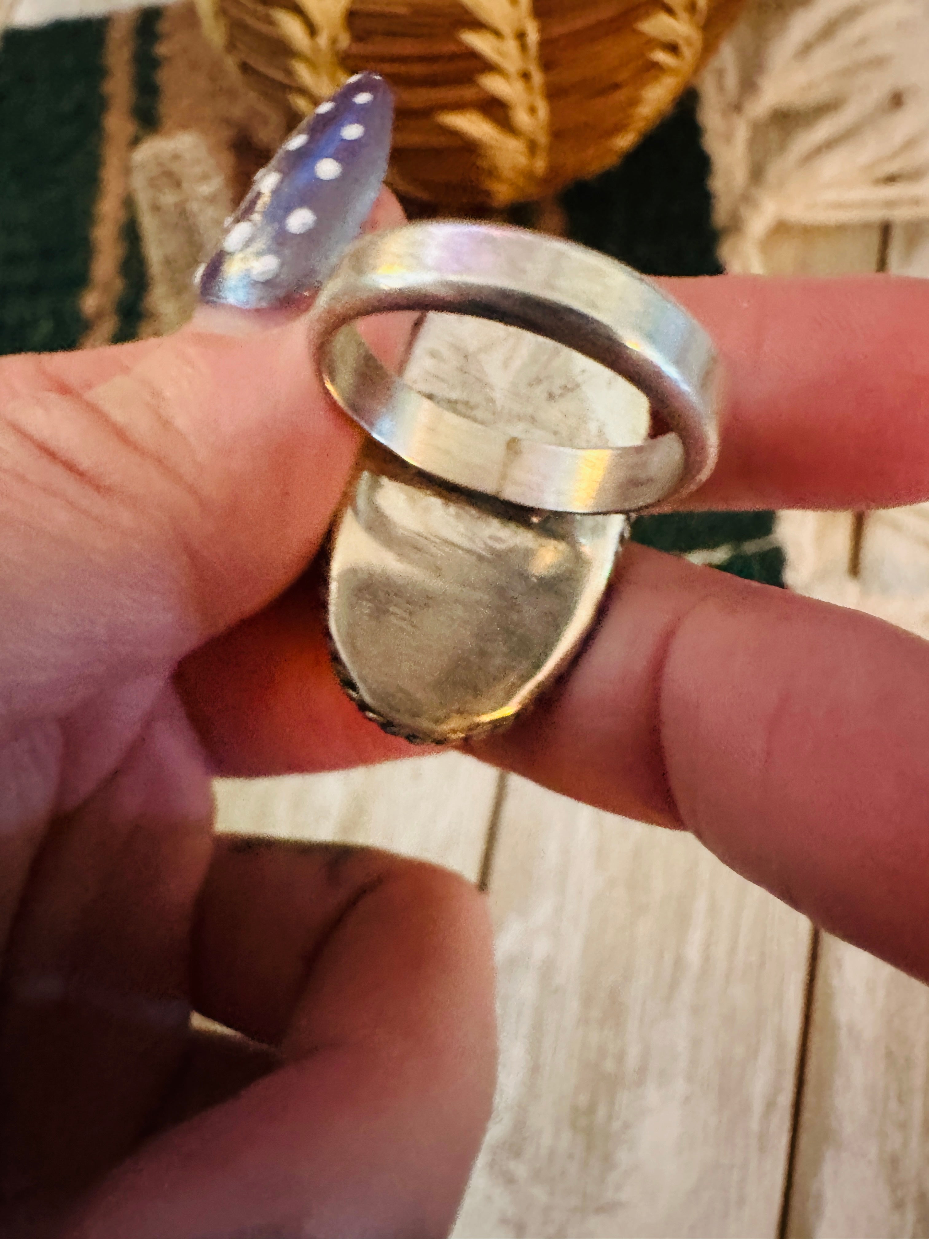 Old Pawn Handcrafted Turquoise & Sterling Silver Ring Size 6.75