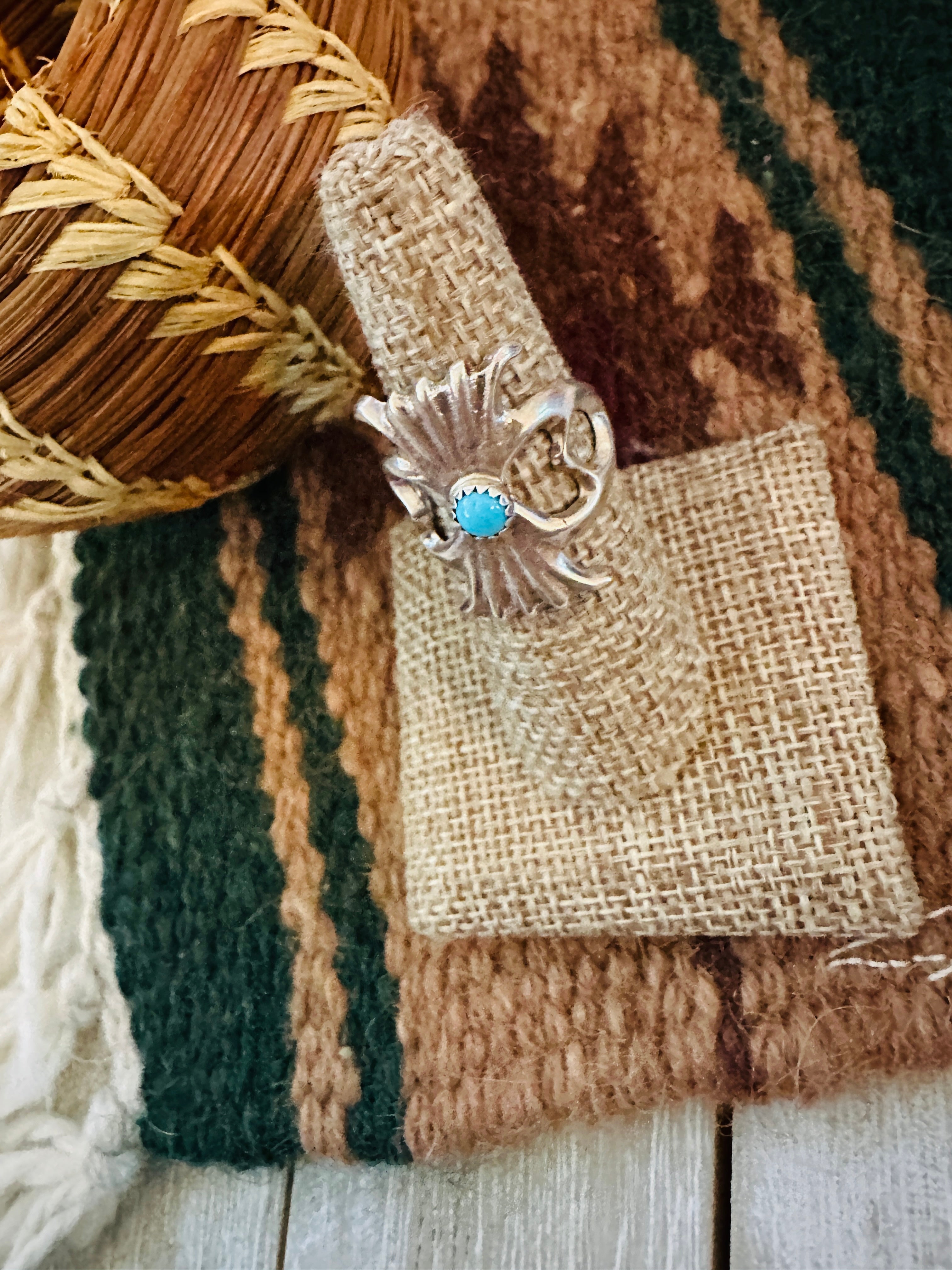Old Pawn Handcrafted Turquoise & Sterling Silver Ring Size 7