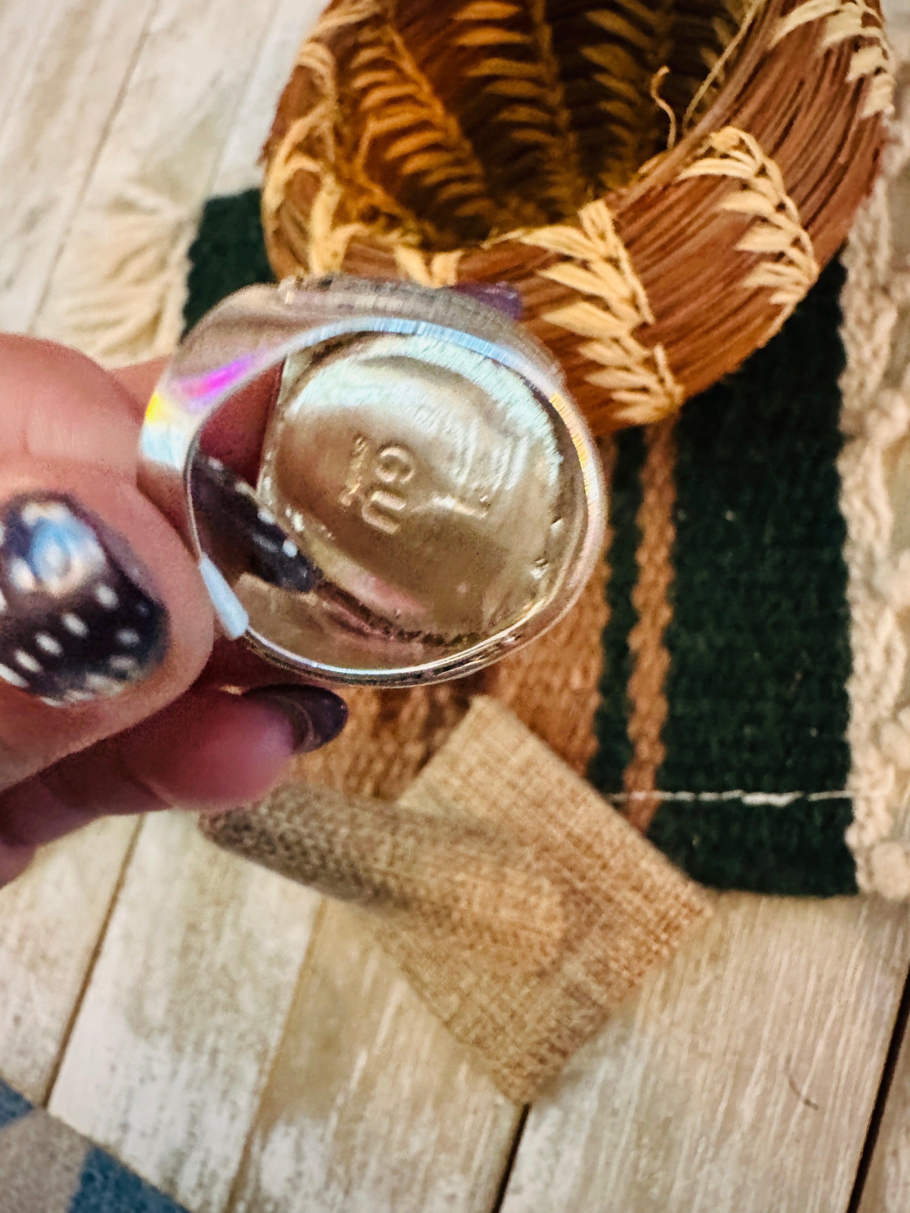 Old Pawn Handcrafted Turquoise & Sterling Silver Ring Size 9.5