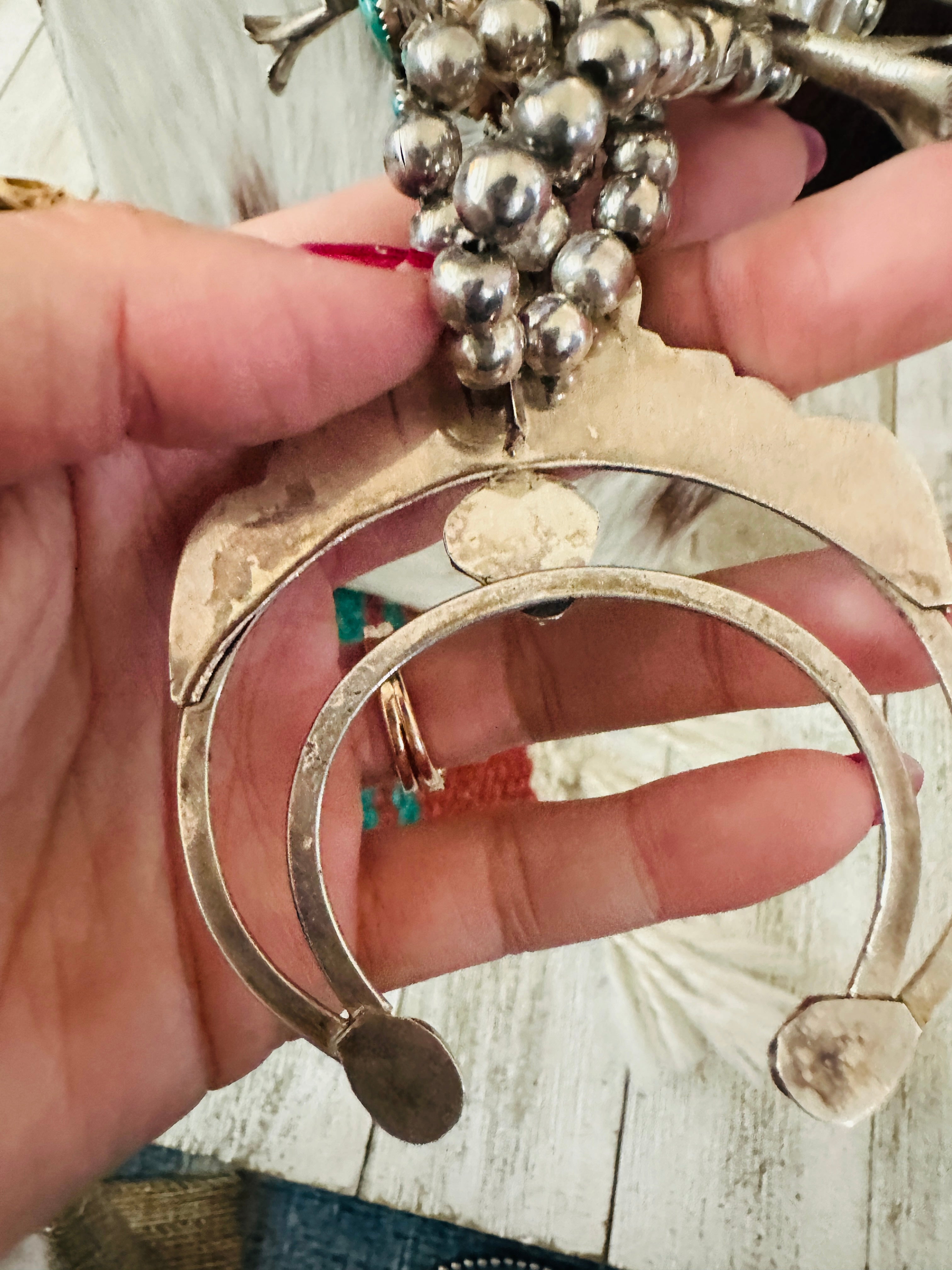 Old Pawn Handcrafted Turquoise & Sterling Silver Squash Blossom Necklace
