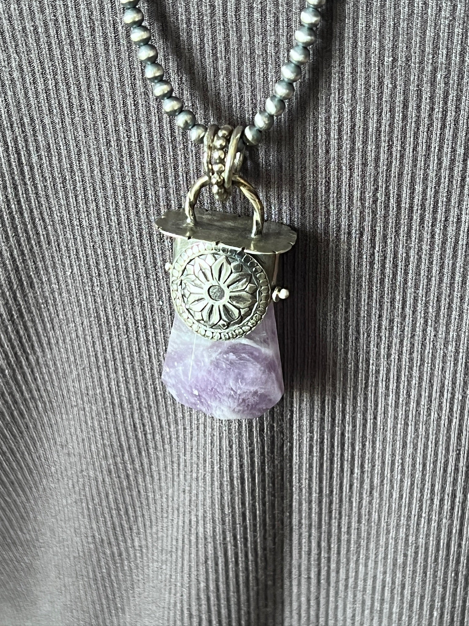 The gem collectors - handmade sterling silver and gemstone pendants by Tucson artist, Maggie Roschyk paired with 30” + 2” strands of 3mm sterling silver beads. Perfect whether worn solo or layered in with other necklaces. This listing is for one necklace as seen in the single item photos.